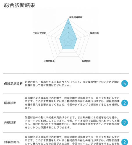 「外壁劣化診断書」の一番のメリットは、お家の屋根・外壁の『健康診断の結果』がわかることです。